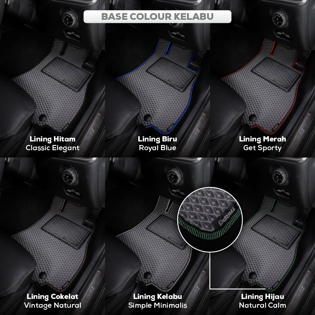 Karpet mobil Trapo presisi di semua jenis mobil seperti Sedan, Hatchback, Crossover atau Truk.