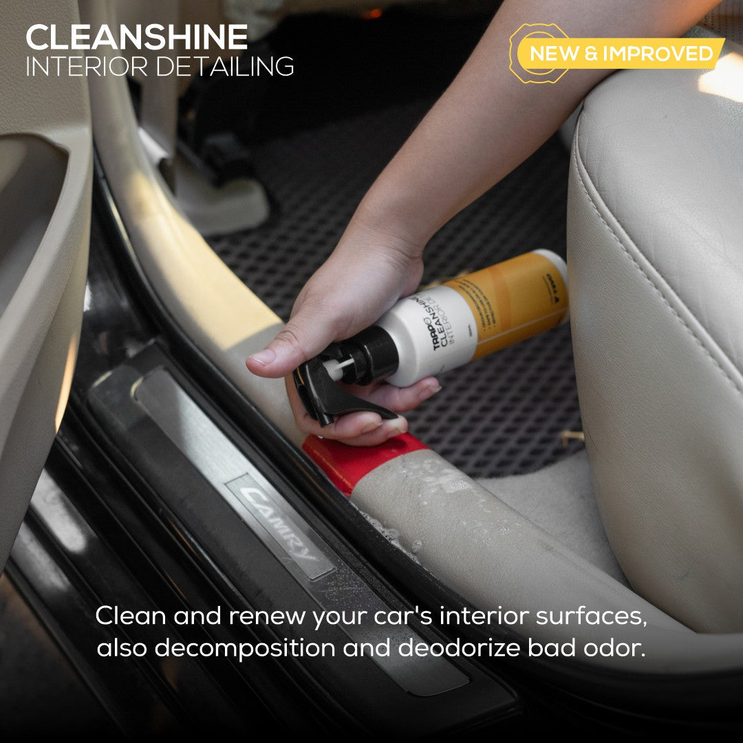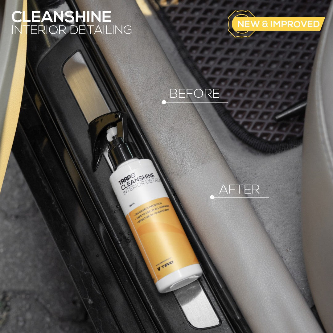 Trapo® CleanShine adalah solusi pembersih yang efisien dan cepat tanpa menggunakan air, dengan aroma yang menyegarkan dan kemampuan membersihkan secara mendalam. Produk Trapo® CleanShine menggabungkan fungsi pembersihan dengan kemampuan menghilangkan bau tak sedap dalam satu formula. Keunggulan lainnya adalah tingkat penguapan yang tinggi, sehingga proses pembersihan dapat dilakukan dengan cepat tanpa meninggalkan residu atau tanda bekas. Trapo® CleanShine dapat digunakan untuk semua bagian interior mobil Anda.
