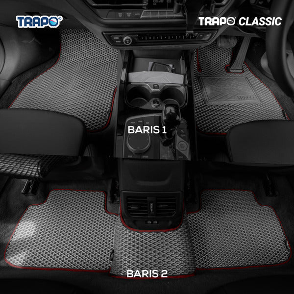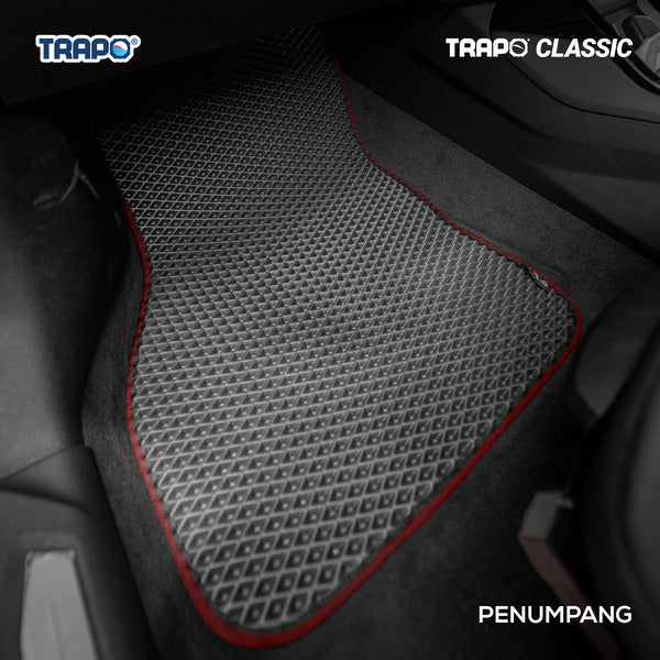 Salah satu favorit pelanggan sepanjang masa, kini ditingkatkan lebih baik! Trapo menciptakan solusi karpet mobil pertama dan satu-satunya yang anti-bakteri dan mudah dibersihkan di Indonesia. Dibuat dengan teknologi Jepang, karpet mobil Trapo dicampur dengan agen pembunuh bakteri aktif, dan mampu mencegah bakteri berbahaya. Trapo Classic yang baru telah menjalani tes laboratorium intensif dan sekarang 3x lebih kuat dan tahan lama untuk dipakai sehari-hari. Menghadirkan perjalanan yang lebih sehat untuk Anda dan keluarga. Bebas khawatir sejak pertama kali beli.Apa yang akan anda dapatkan dalam paket jika Anda order FULLSET:1 x Karpet Bagian Pengemudi1 x Padding1 x Karpet Penumpang Depan3 x Karpet Penumpang Belakang4 x Karpet BagasiFitur hebat lainnya:• Garansi 2 tahun • Desain padding yang stylish • Velcro yang ditingkatkan • Mudah untuk dibersihkan • Mudah menampung lumpur & kotoran • Tidak berbau • Tahan air • Anti-selip • Dapat didaur ulang